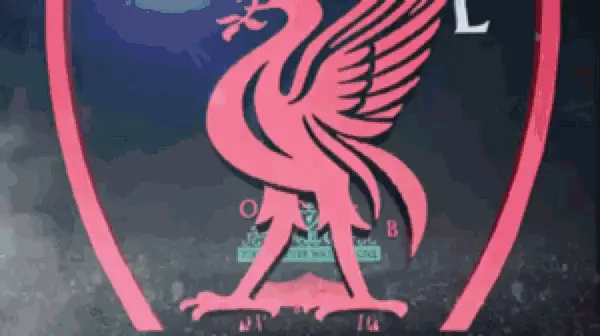 Animated reveal of the iconic Liverpool Football Club logo, featuring the Liver Bird and 'You'll Never Walk Alone'.