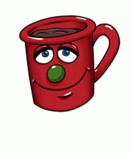 A cartoon red cup with a green nose and the word "Okidoki" underneath, representing Living Puppets Menty.