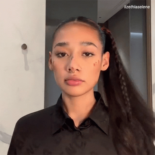 Lizeth Selene, with braided hair and a nose ring, poses for the camera, holding a makeup brush.
