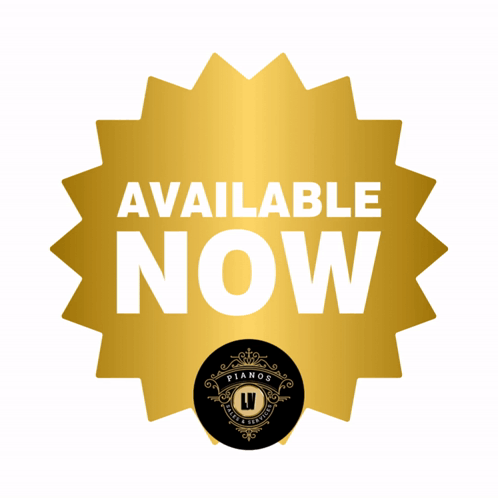 A golden starburst graphic announces "LJV Pianos Available Now" with a sales and service logo.