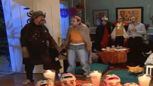 Llanero Solitario and El Jorjais, possibly Manuel El Flaco Ibanez, at a Halloween costume party.