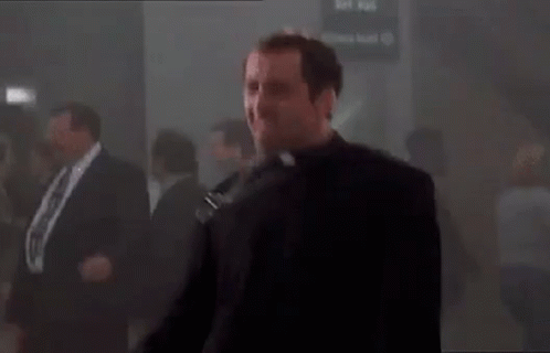 Nicholas Cage as a priest enthusiastically dancing to celebrate 'Llego El Viernes' (Friday has arrived).
