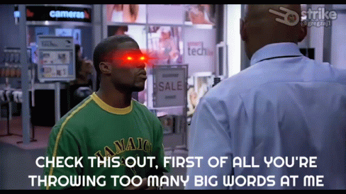 Kevin Hart's iconic 'too many big words' scene from The 40-Year-Old Virgin, expressing perceived disrespect.