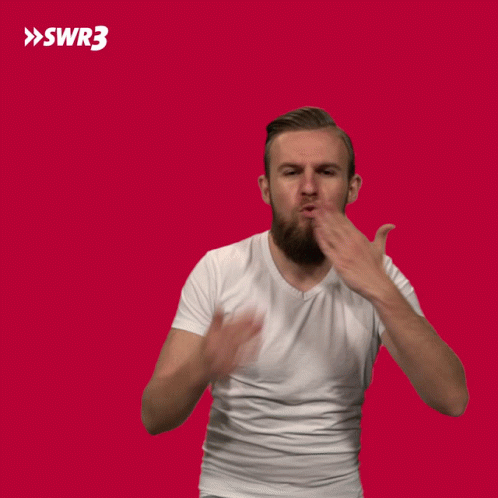 Dominik blows a kiss to the camera against a vibrant red background, with the SWR3 logo visible.