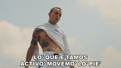 Gabriel Garzón Montano, shirtless, stands against a cloudy sky with the caption 'Lo Que Etamos Activo Movemos Lo Pie'.