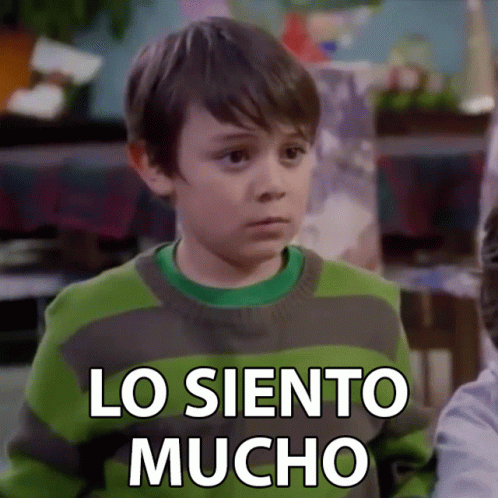 Young boy from La Rosa De Guadalupe says 'I am very sorry' with a regretful expression.