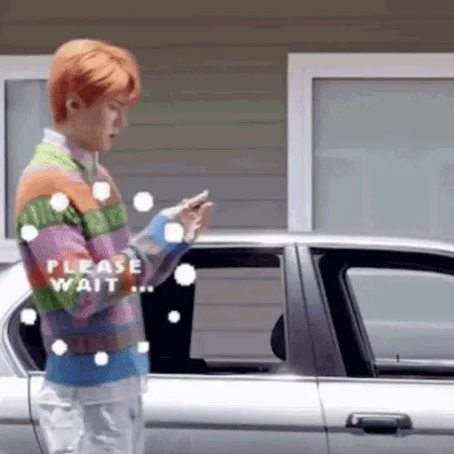 K9Kuro's VShojo character Venii with a loading icon, set against a spooky red background.