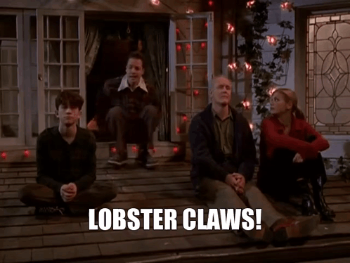 John Lithgow, Kristen Johnston, Joseph Gordon-Levitt, and French Stewart react to 'Lobster Claws!' on the porch.
