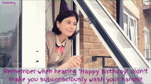Lisa Ronaghan in a party hat, reflecting on how 'Happy Birthday' now reminds us to wash hands during lockdown.