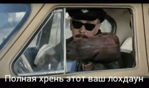 Stepanov, a man in a driver's cap and sunglasses, comments on the lockdown from his car, saying it's 'complete nonsense'.