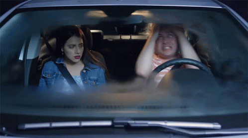 Enchufe Tv: Stressed driver reacts wildly in car, passenger concerned.