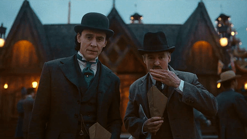 Loki (Tom Hiddleston) and Victor Timely (Jonathan Majors) stand together at a fairground in 1893 Illinois.