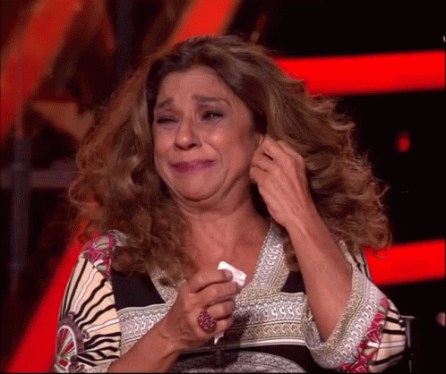 Lolita Lolaflores is visibly emotional, crying and wiping her tears with a tissue during a show.