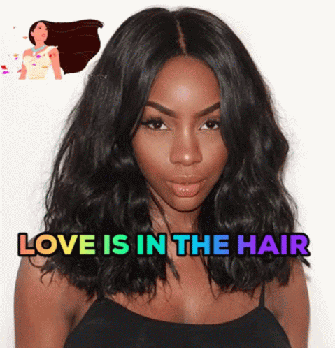 A woman with beautiful 4c hair is featured, with the vibrant text 'Love Is In The Hair' displayed.