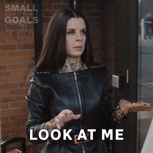 Kris, played by Meredith MacNeill, hugs herself, saying 'Look at me' and 'Oh, oh, mm-mm-mm' in a moment of self-comfort.