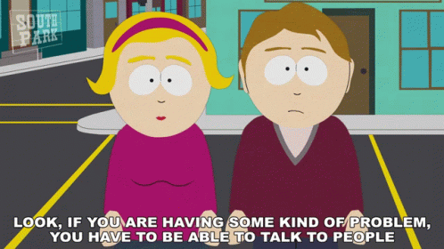 Two South Park characters discuss the importance of talking about problems.