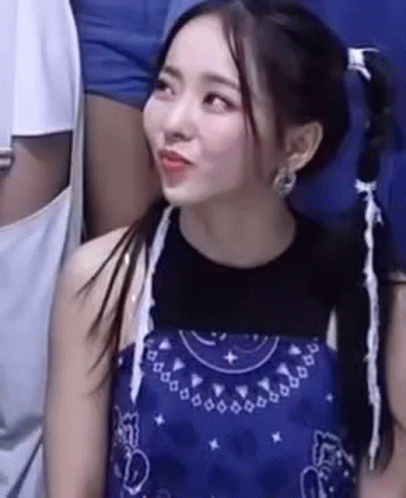 Loona Vivi making cute expressions and giving two thumbs up, wearing a blue and black outfit.