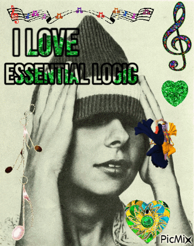 Lora Logic featured on a poster with 'I LOVE ESSENTIAL LOGIC' text and musical notes.
