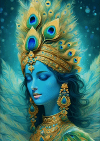Lord Krishna, depicted with blue skin and a peacock feather crown, offers a serene good morning blessing.