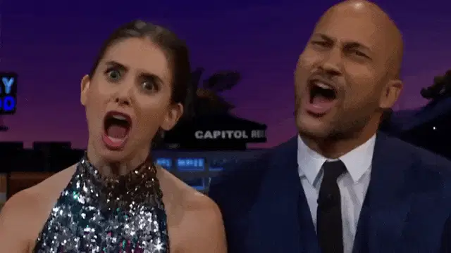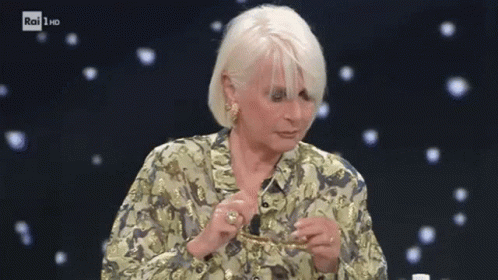 Loretta Goggi puts on stylish red-framed sunglasses, showing a surprised expression on "Tale E Quale Show".