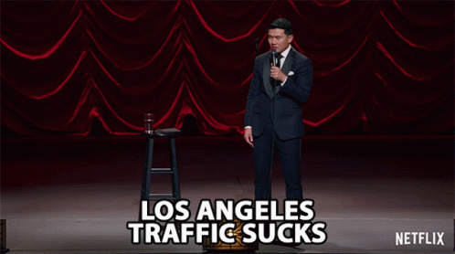 Comedian Ronny Chieng performs stand-up, lamenting the notorious Los Angeles traffic.