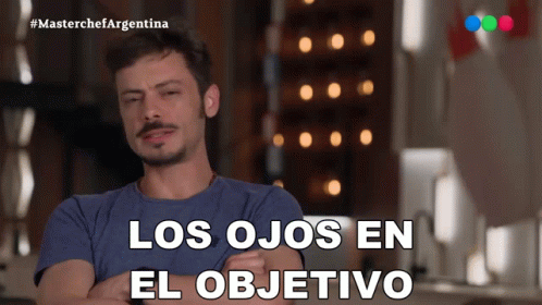 Tomas Fonzi from Masterchef Argentina points and says 'Los Ojos En El Objetivo' (Eyes on the Objective).
