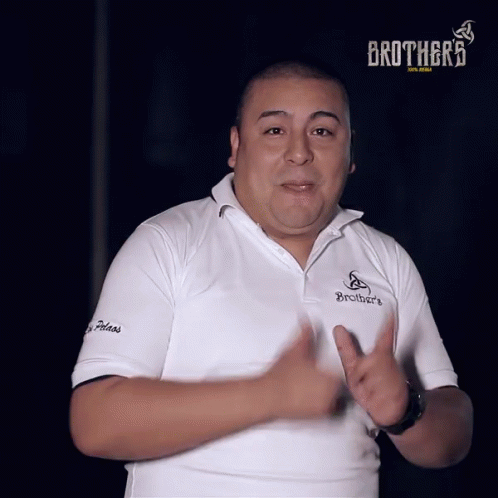 A man from Los Pelaos Brothers Bar, wearing a white polo shirt with the 'Brothers' logo, gestures enthusiastically.