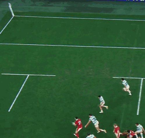 Los Pumas' Matias Moroni makes a crucial tackle on Rees-Zammit during a Rugby World Cup match against Wales.