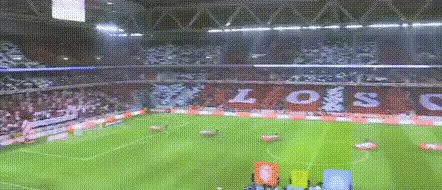 LOSC football club's stadium filled with fans displaying banners and scarves, showing support for Lille.