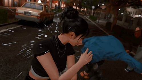 Chitose from Lost Judgment performs an arm-bending combat move on an opponent, showcasing an EX Action.