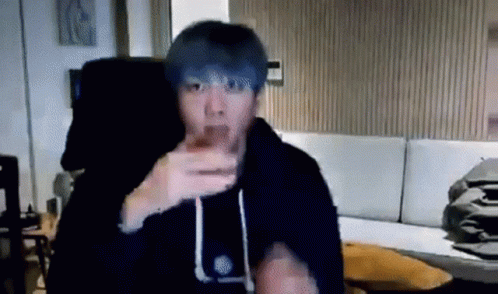 Namjoon (RM) from BTS makes a kiss gesture and waves during a Lov4hob Vlive session.