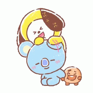Adorable BT21 characters Chimmy, Koya, and Shooky sharing a happy hug, full of love and cuteness.