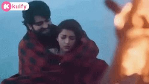 Naga Shaurya and Mehreen Pirzada share a tender moment, wrapped in a blanket by a fire during winter.