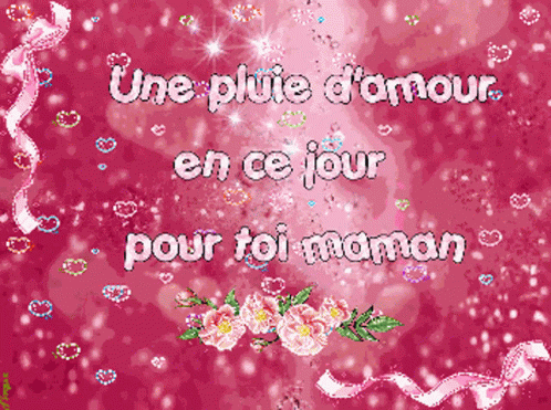 A heartfelt message in French, 'Une pluie d'amour en ce jour pour toi maman,' wishing a mom love.