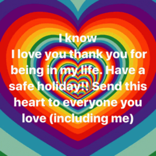 Animated rainbow heart expresses love and gratitude with the message 'I Know I Love You, Thank You For Being In My Life'.