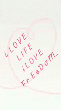 A pink heart outline graphic with the text 'i LOVE LIFE i LOVE FrEeDoM..' written inside.