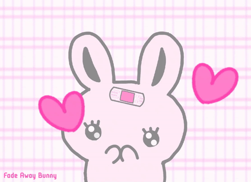 An adorable pink cartoon bunny with a bandage and floating hearts, from Fade Away Bunny.