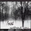Black and white winter scene with bare trees and the emotional quote 'I'm lost without you...'