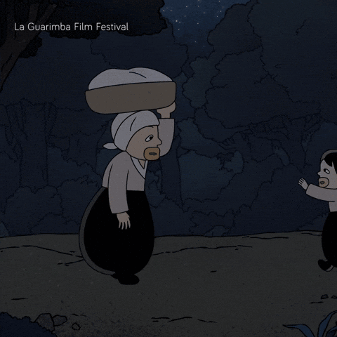 An animated mother carrying a basket is lovingly embraced by her two children, featured by La Guarimba Film Festival.