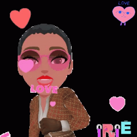 Lignon Cynthia's animated avatar blows a kiss, surrounded by hearts and messages of love, including 'I Love You'.