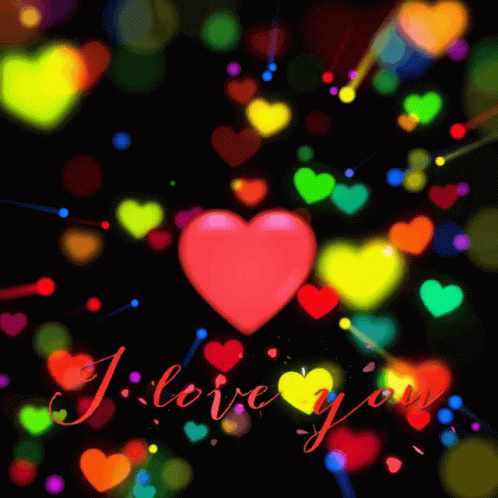 A vibrant animation featuring colorful hearts and the heartfelt message 'I love you'.