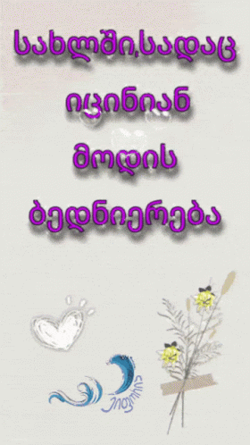 A beautiful bouquet of white daisies, a heart, and a wave, with Georgian text about love and happiness.