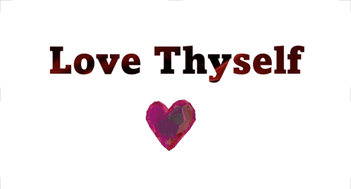 Animated text 'Love Thyself' with a sparkling pink heart, promoting self-love, respect, and well-being.