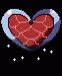 A pixel art heart container, with a purple border, spins and cracks, then reforms.