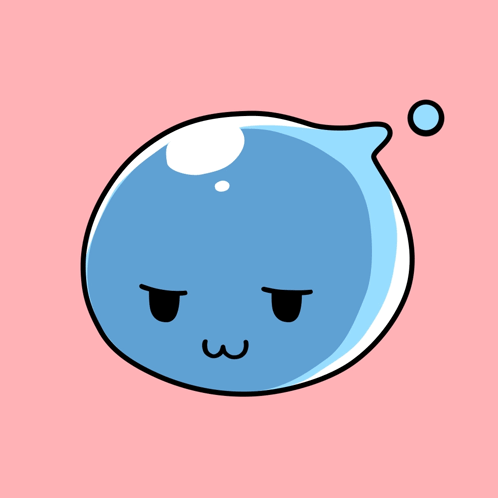 An adorable blue blob character expresses love with hearts in its eyes and floating around it on a pink background.