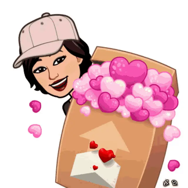 A cute cartoon bear receives a 'Love ya!' message on its phone and reacts with joy, surrounded by hearts.