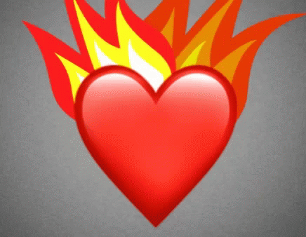 A vibrant red heart emoji engulfed in flames, displaying the romantic message 'You Set My Heart On Fire'.
