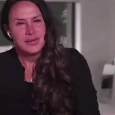 Karla Sofia Gascon is visibly emotional and crying, covering her face, possibly for Love4elodie.