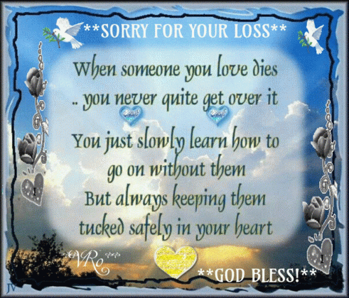 A heartfelt sympathy message: 'When someone you love dies, you never quite get over it, but keep them tucked safely in your heart.'