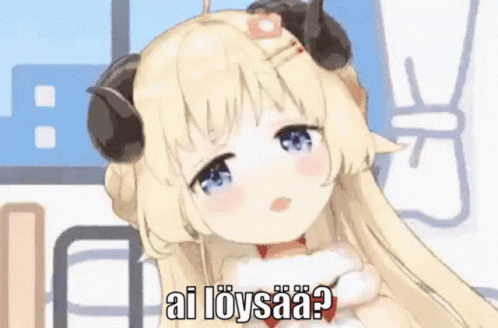 Hololive's Watame reacts with surprise to the Finnish phrase 'ai löysää?' with wide eyes.